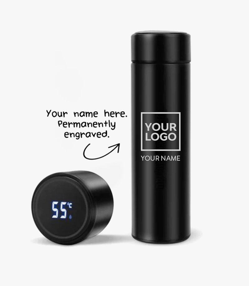 Customized Stainless Steel Bottle with LED Temperature Display, Double Wall Vacuum Flask, 500 ML BlackHurry Up! Offer End In: