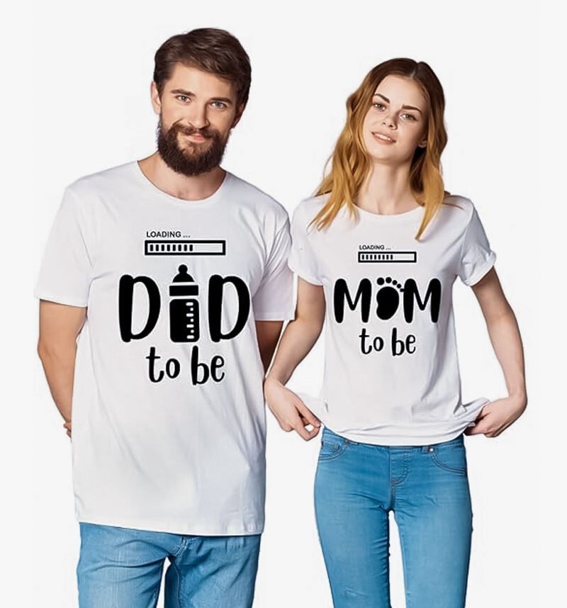 Mom Dad to be White Unisex Couple T-Shirt-