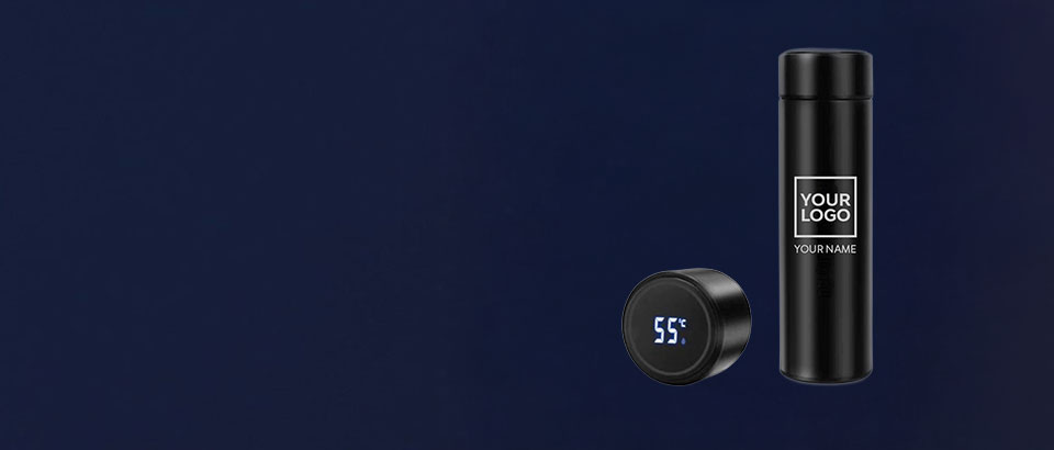 Customized Stainless Steel Bottle with LED Temperature Display, Double Wall Vacuum Flask, 500 ML BlackKey Features: